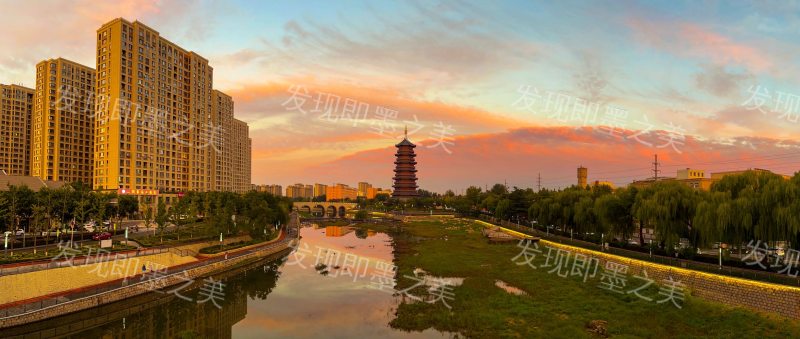 墨水河畔,橙红与粉紫交织的晚霞是自然的彩线,以塔尖为针,在靛蓝渐染的天幕上绣出流动的光纹。