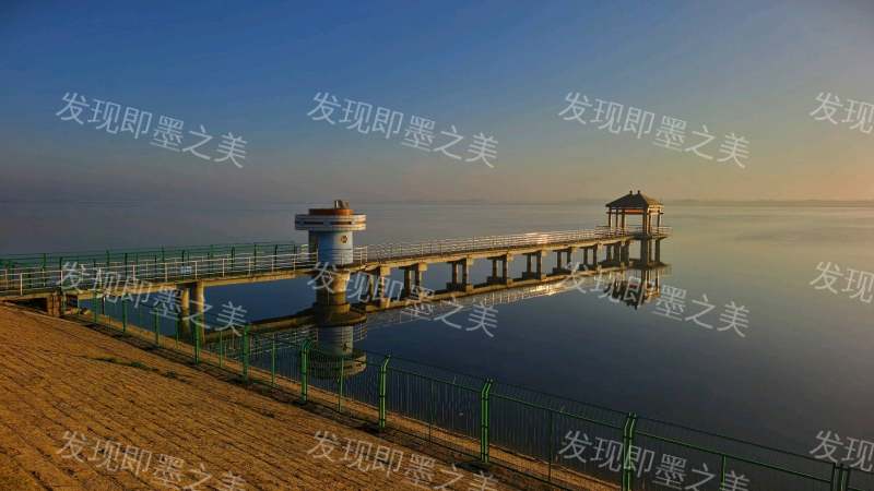 晨曦微露,宋化泉水库湖面如镜,映着蓝白渐变的天光。长桥卧波,灯塔与凉亭静静伫立,倒影在水中漾开柔纹,岸边石阶铺就的堤坝泛着暖黄,整幅画面清寂又温柔,像一首无声的晨曲。