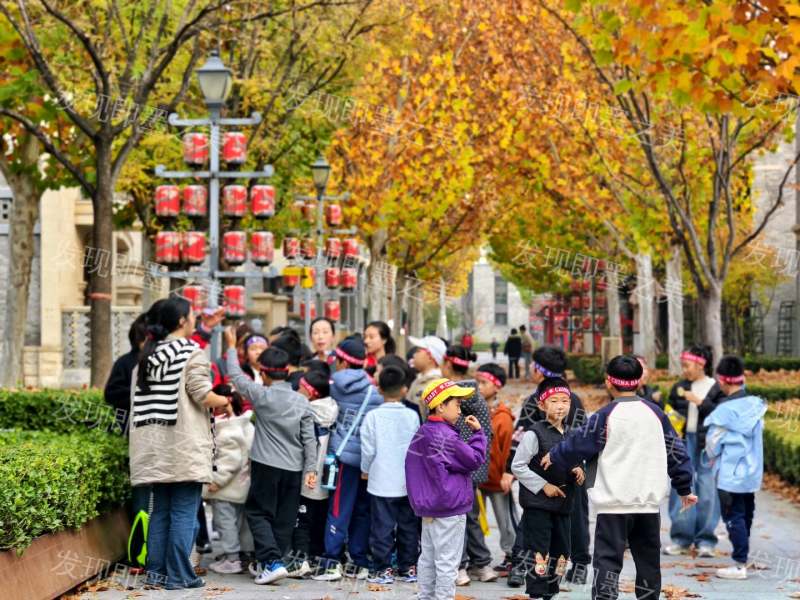 秋阳染叶,即墨古城的石板路上,一群戴着红额带的孩童正嬉笑穿行。他们或驻足仰头看红灯笼,或追逐飘落的金叶,清脆的欢笑声与古墙、秋树相映,宛如一幅流动的秋日童趣图。
