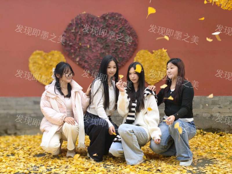 即墨古城圣庙街的红墙下,金黄银杏叶簌簌飘落,映衬着前来打卡的美女们,她们或浅笑驻足,或轻倚墙根,衣袂与落叶共舞,古韵与青春交织成一幅灵动画卷。
