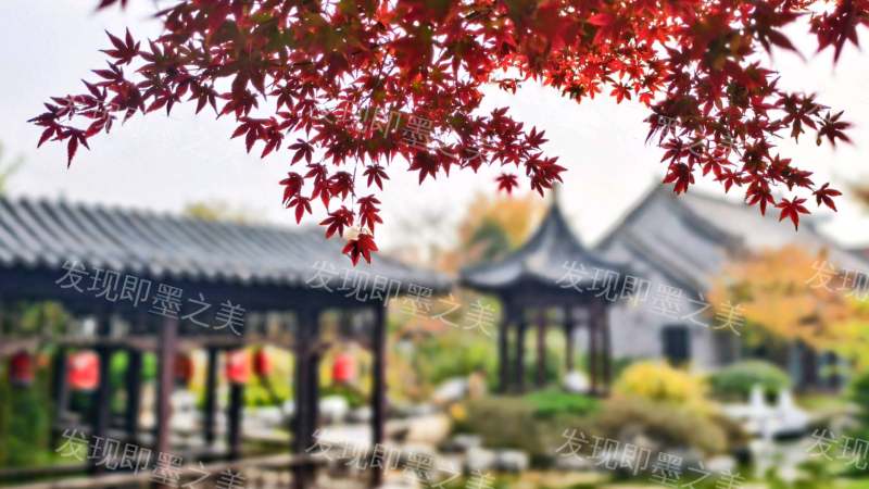 即墨古城墨园,一轴江南秋韵图。近观红枫似火,叶片如丹,垂落枝头织就天然帘幕;远景黛瓦亭台隐于斑斓树影,飞檐翘角与层叠秋色相映,水墨般的古建轮廓里,藏着触手可及的诗意。