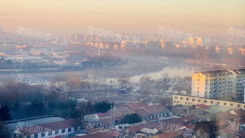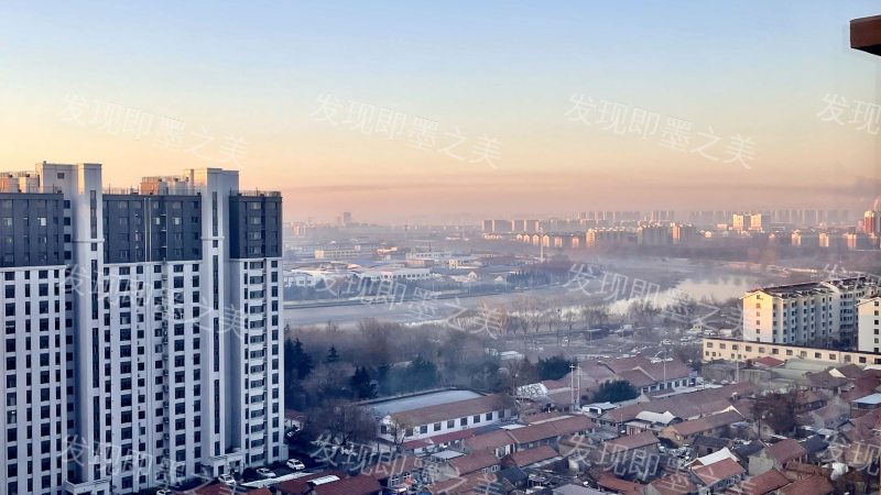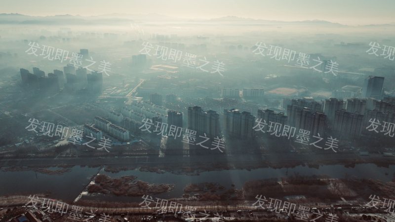 墨水河晓雾,城居共朝晖,新旧景交织。