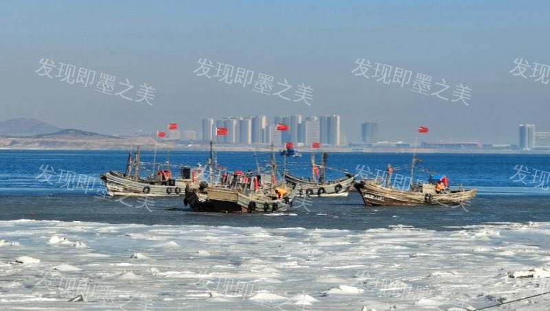 鳌山湾打渔船上的猎猎红旗给寒冷的鳌山湾平添了几分生机。