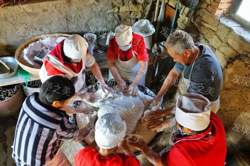 在冬天里,粉条是人们常吃的一味美食,五花肉炖粉条白菜更是人们最喜欢的一道菜。进入冬季,在青岛即墨潘家村潘惟波家的老屋里,七八个村民们生火搭灶,热火朝天的用传统的纯手工方式制作着红薯粉条。这样的粉条不含任何添加剂,直接用红薯粉加工,吃起来非常筋道顺滑,深受人们的喜爱。 用传统工艺制作红薯粉条,主要有和面、漏粉、捞粉、挂粉四个步骤。和面是制作粉条的第一个工序,也是最累的一道工序。由于一盆面有几十斤重,而且需要反复的揉面。这道工序六位村民一起同时用力均匀揉了一个小时才揉到软硬合适。 漏粉是最讲究手艺的一道工序,俗话说漏粉条最关键就是“漏”,这句话一点也没错,因为粉条能否粗细均匀全由漏粉这道工序控制,漏粉者漏粉时一只手端着漏瓢,举高后,另一只手开始均匀地敲打漏瓢,粉条就会源源不断地漏进下面的锅里。当一瓢快漏完时,旁边的帮手会将另一团面放进漏瓢里,这样才能保证粉条的长度。开始漏粉一人和面,一人下粉,一人从大锅里往外捞粉条,一人负责冷却,这样就成了粉条,很神奇哦。这个漏瓢装满面大约有四斤重,需要很好的臂力才能长时间的端着敲着。 粉条出锅后用一根细棍串起来,搭到院子里的架子上晾晒。粉条在户外晒干,就可以长时间保存了。据潘师傅说纯正的红薯粉条色泽略微偏黄,接近淀粉原色,而且有红薯粉特有味道。 随着人们对健康饮食的看中,农村地道的手工粉条越来越受到食客的欢迎,这也给了老手艺新生。今年68岁的潘师傅手艺是在当年生产队里学来的。从他18岁起,他这辈已经做了50多年红薯粉条了,在周边的村民里积攒了良好的口碑,买家都是老主顾,由于纯手工制作,产量不多,粉条常常供不应求。曾经村里有许多家冬季农闲时制作手工粉条,现在只剩他一家还在坚守。现在年轻人都不愿意制作粉条,和潘师傅一起制作粉条的都是60岁以上的老人,最大的一位今年76岁了。虽然他们都是老年人,可是干起活来估计年轻人都赶不上,这个制作粉条的老手艺给潘师傅他们在农闲时增加了收益。 潘师傅和红薯粉条打了一辈子交道,靠这门手艺将红薯粉条做出了口碑,深受顾客喜爱。他说:“虽然传统手工制作的粉条不含添加剂,光滑筋道,口味独特,但是却费时费力,成本高,现在市场上卖的大部分都是机器生产的粉条。虽然制作方法大致相同,但味道却有着区别,纯手工制作的粉条,人们还是更喜欢吃。但是现在人们在市场上已经很少能买到纯手工制作的粉条了,我们家的粉条,在当地是非常受欢迎的。他现在担心的是未来他这个手艺的传承问题。这不仅是一门手艺,也是一种文化啊!”