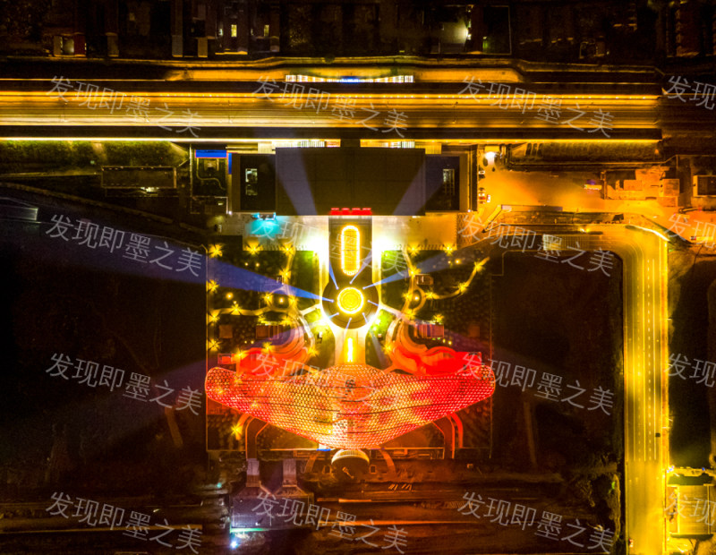即墨高铁站国庆灯光秀。
