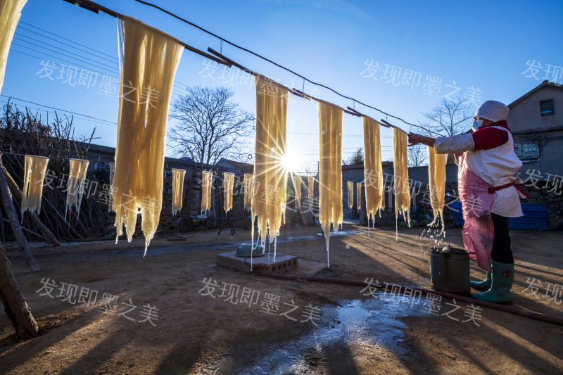 纯手工粉条制作的晾晒环节