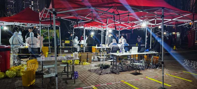 虽然天色已晚 但医护人员仍然加班加点给居民做核酸检测
