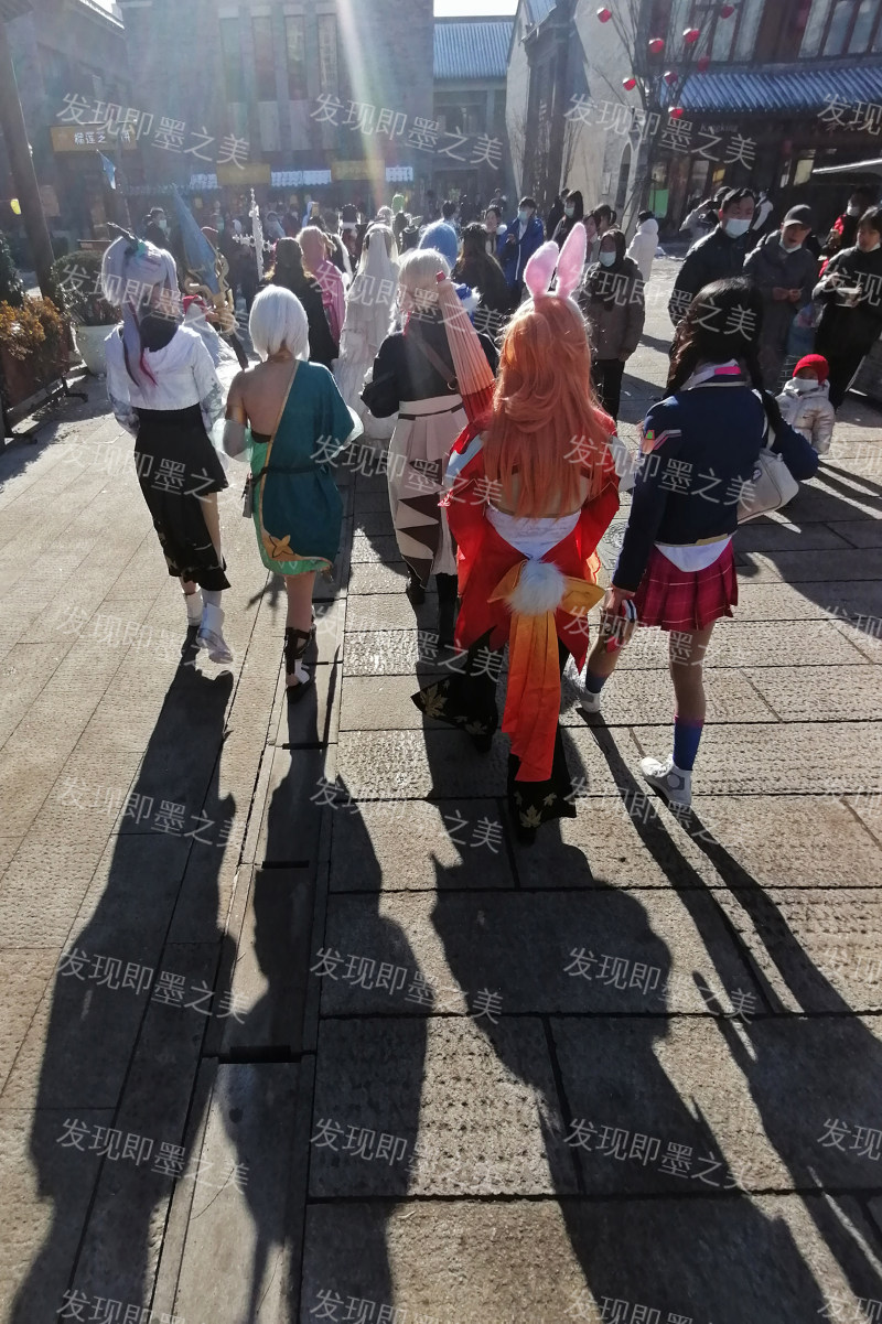 参加文化节巡游的演员行走在古城街道,成为一道靓丽的风景。