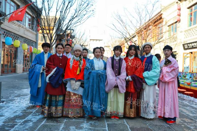 即墨古城文化节期间,来自四面八方的少男少女在古城街头游玩。