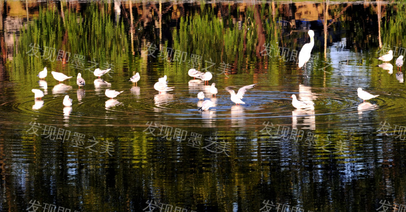 海鸥与白鹭共舞