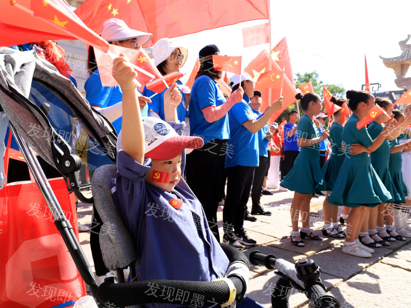 6月6日在即墨古城举行庆祝建党一百周年快闪活动。在与家人同行的小朋友也情不自禁的欢呼起来!