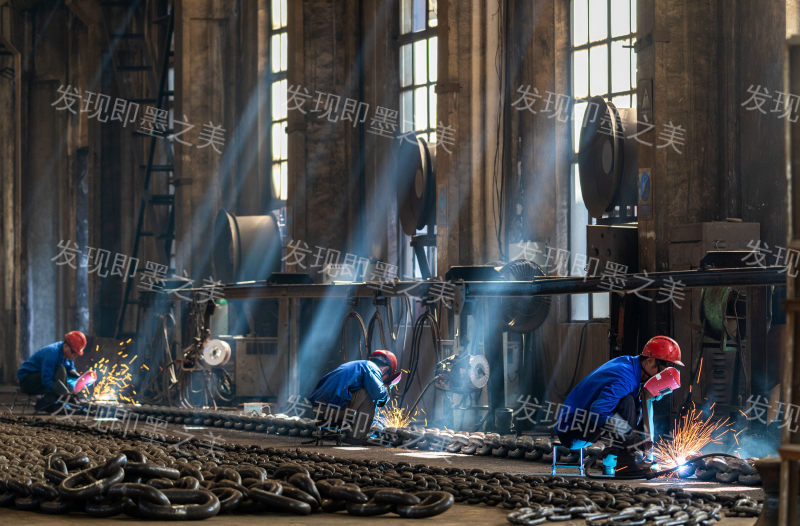 2020年8月拍于即墨某工厂。车间里,工人们就像艺术大师,正在专心雕刻一件由光柱、链条和建筑构成的庞大艺术品,向人们展现着劳动的美丽。