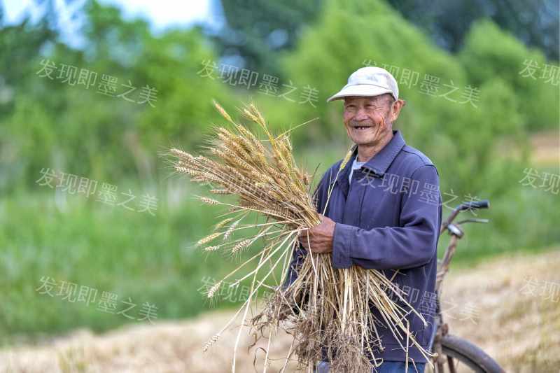 2022年6月7日,在温泉街道拍摄收割麦子,一位老人拿着麦子露出了丰收的喜悦。