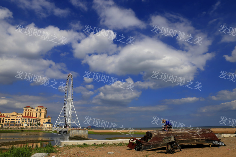 在鳌山湾畔,一位渔民正在利用休渔期修理自家渔船。